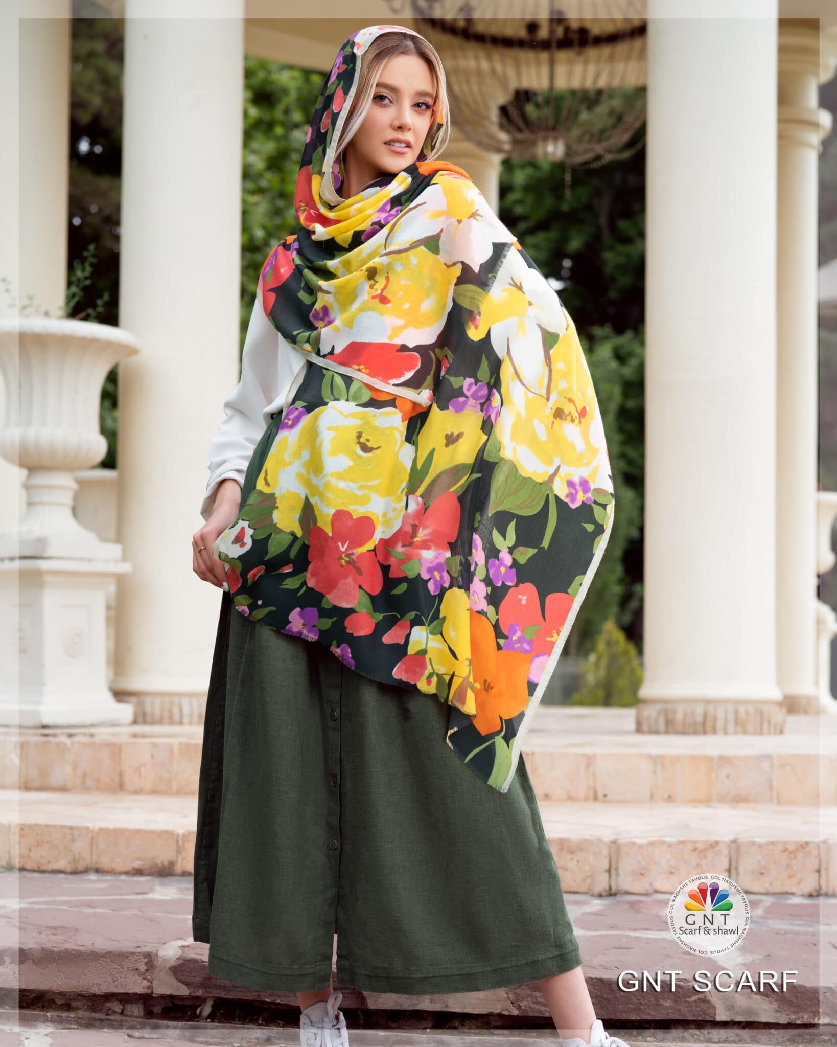 این شال زیبا بر روی پارچه نخی چاپ شده است