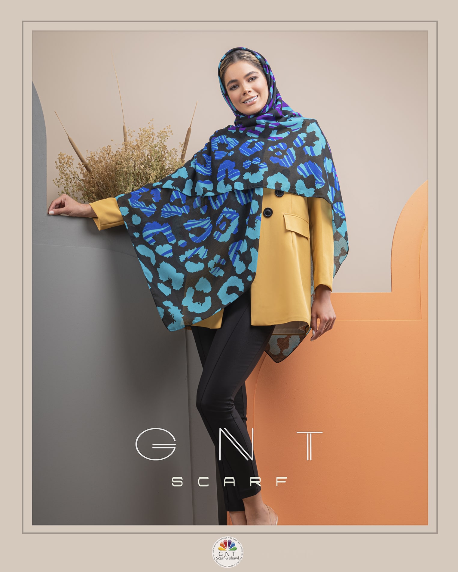 این روسری  زیبا بر روی پارچه نخی  چاپ شده است