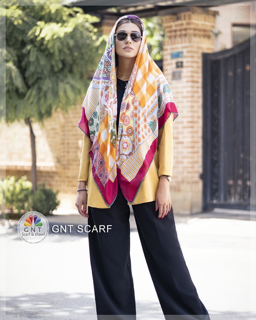 این روسری  زیبا بر روی پارچه نخی  چاپ شده است
