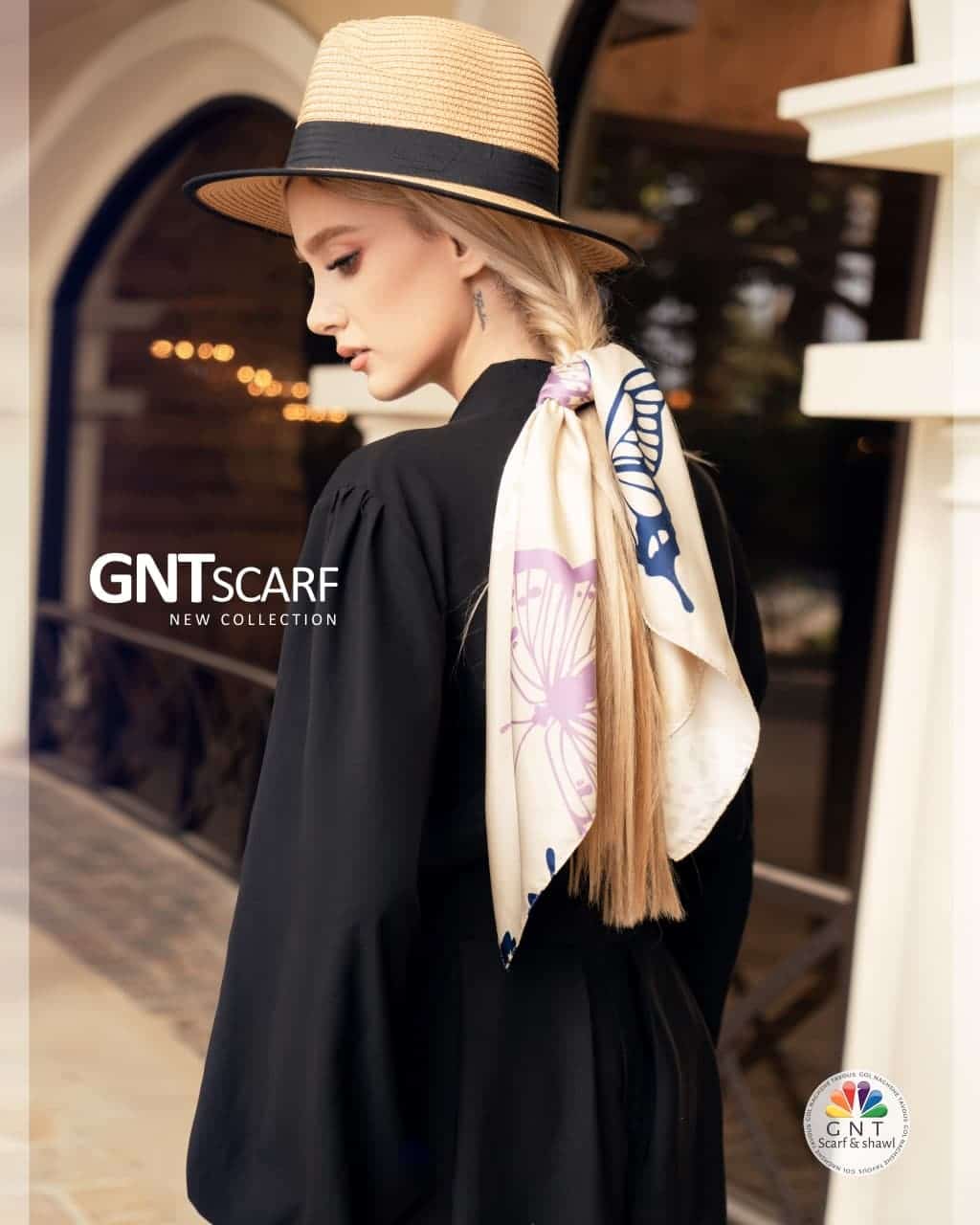 باندانا پروانه  بر روی پارچه ساتن  چاپ شده است