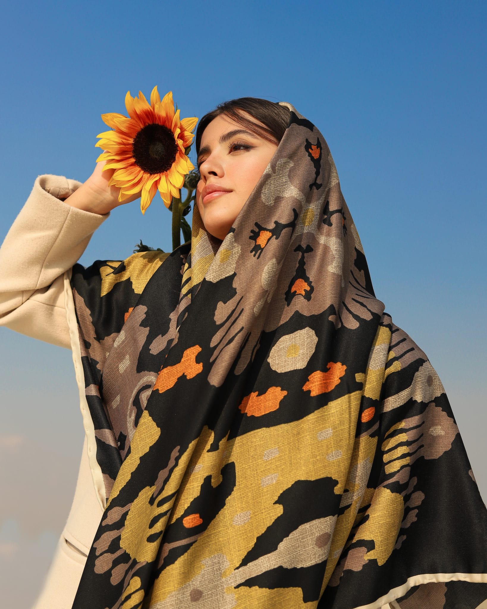 روسری نخی کجراه کشمیر مناسب پاییز و زمستان در رنگهای گرم
