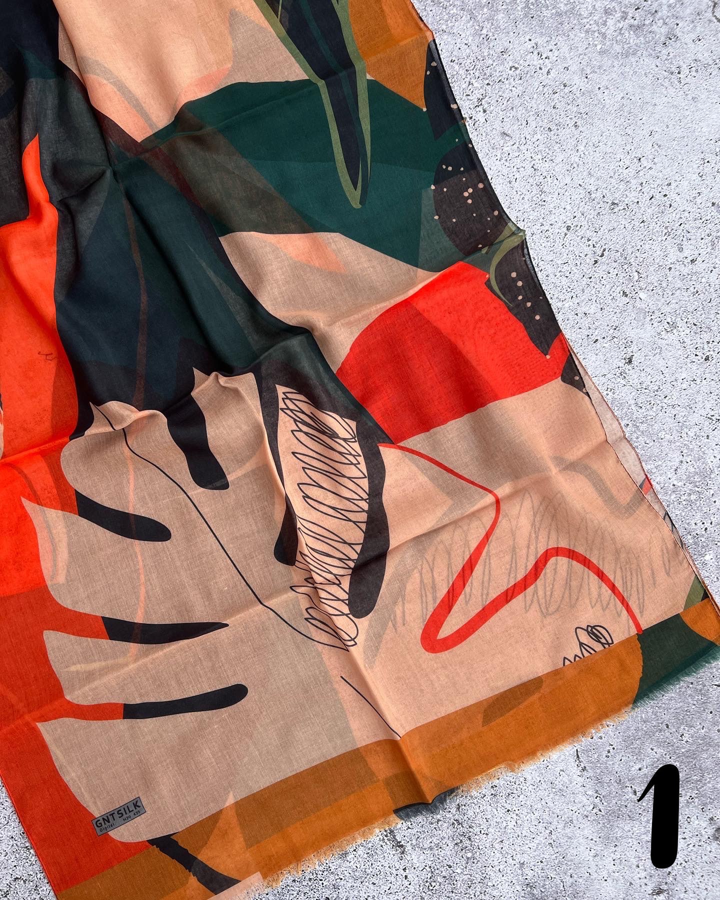 شالهای نخی بهاره با طیف زیبای نارنجی های مختلف